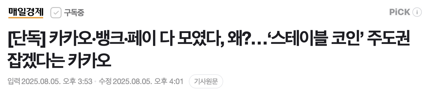 특히 카카오 그룹이 관련 태스크포스(TF)를 출범하며, 스테이블 코인을 미래 성장 동력으로 명확히 규정하고 전략을 본격화하고 있다는 점은 업계 전반에 큰 주목을 받고 있습니다.