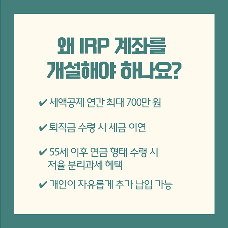 - 2. IRP 계좌를 개설해야 하는 이유