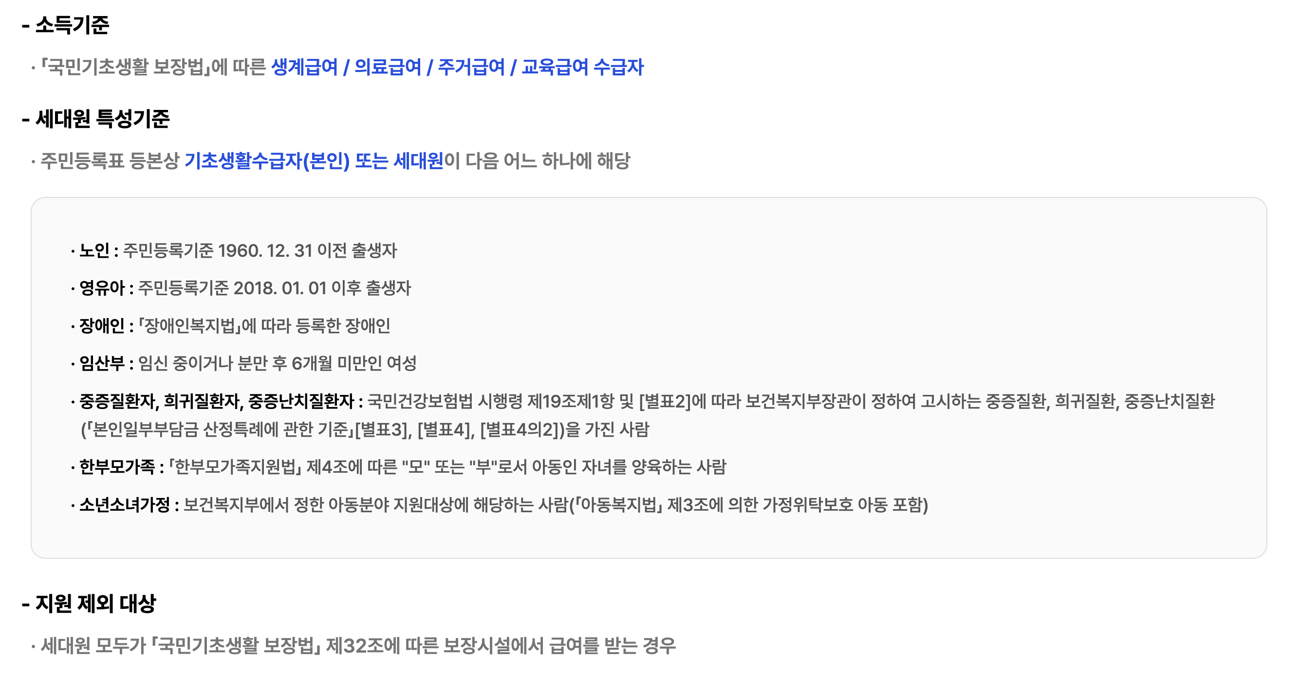 - 가구원 중 1명 이상이 아래에 해당하는 경우